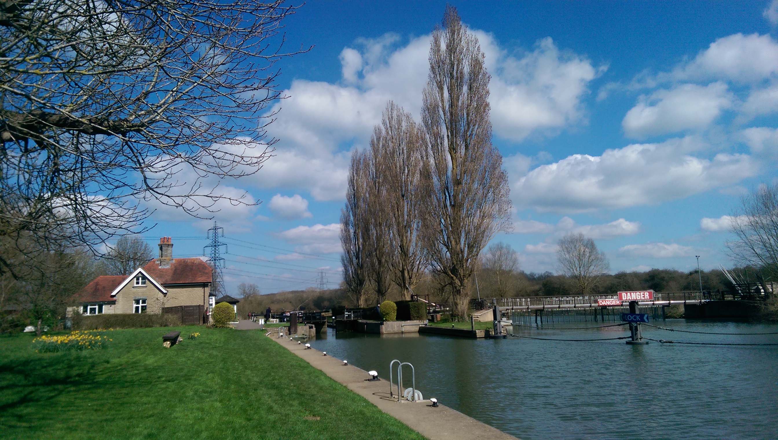 At Shifford Lock the river divides and the path continues along a cut that bypasses a loop in the river and heads almost directly west to rejoin the original course of the river near the village of Chimney. Just past the end of the cut we passed – but did not cross – Tenfoot Bridge. A bridge which is neither ten feet long, nor ten feet high. The name derives from a 19th century weir that was previously at that location and which incorporated a ten foot wide flash lock. It was the removal of the weir and consequent adverse effect on the flow of the river that led to construction of the cut.
