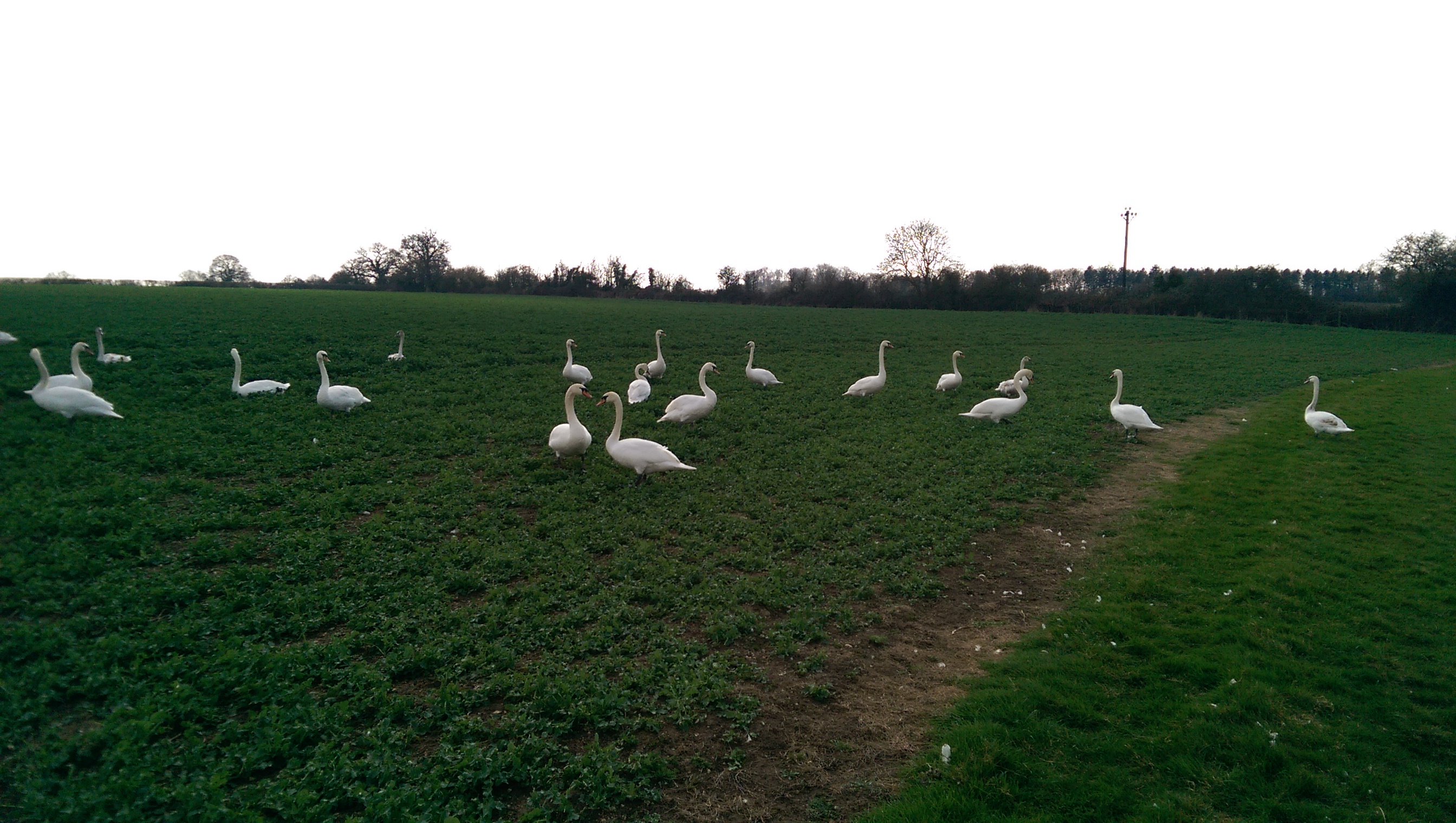 Approaching Newbridge (where the “new” bridge was built 700 years ago) the path passes through a pub garden. A much more inviting establishment this time but again we resisted, crossed the bridge and continued on our way. Through a meadow by the river. We came across a lot of swans resting in the meadow. I have tried to find out the collective noun for swans and have found many alternatives including “herd”, “bevy”, “game” and even a “lamentation” of swans. I think someone is just using random words as collective nouns. Did you know that the made-up term “a flange of baboons” has been widely used by the scientific community since it appeared in a Not The Nine O’Clock News sketch despite the correct term being “troop” or “congress”? Something else that may or may not be made up is that an angry swan can easily break your arm. We were taking no chances and were careful not to disturb them. Unlike a woman coming the other way with an over-excited dog off the lead, who thought that saying “come back Fido” would bring said dog under control when it had already spotted the swans and was charging towards them. It didn’t stop the dog, but fortunately the swans were alert and took to the skies, and I don’t believe there were any injuries during this incident; not human, canine nor avian.