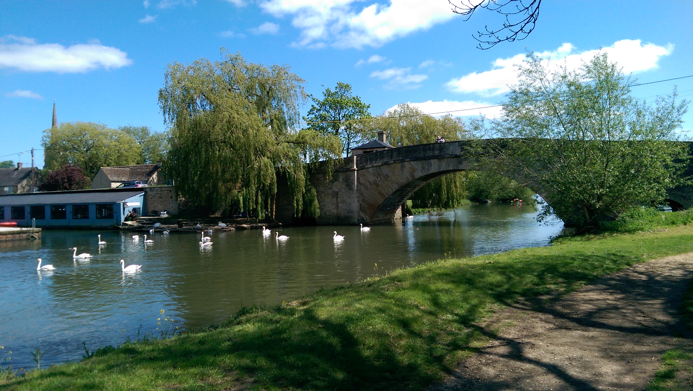 Lechlade is known as the limit of the navigable Thames, i.e. the highest point for “reasonably large” craft such as narrowboats. Halfpenny Bridge marks the limit, as well as marking the county boundary between Gloucestershire and Wiltshire.